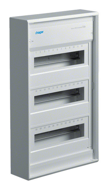 HAGER Kleinverteiler Volta, Aufputz, 3x12 Teilungseinheiten, IP30, ohne Tür bestückt nach Auswahl.