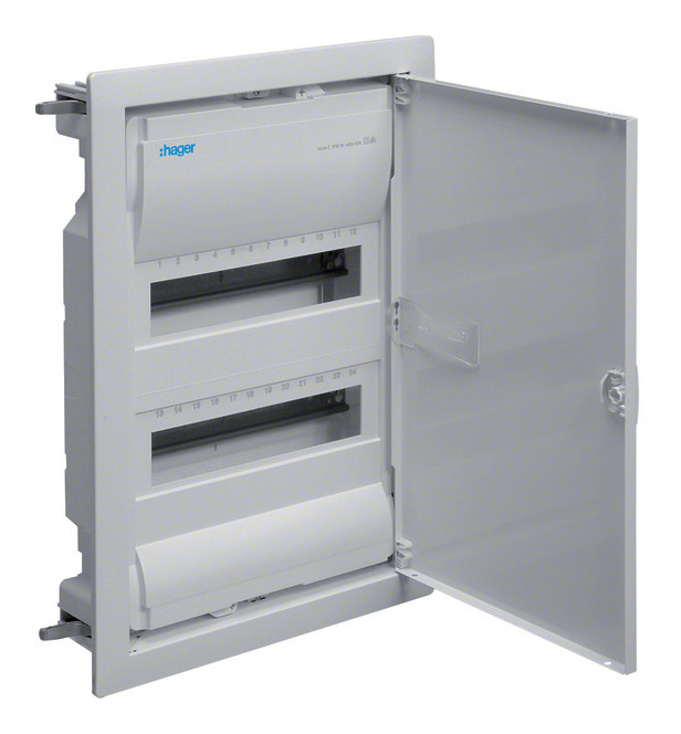 HAGER Kleinverteiler Volta, Hohlwand, 2x12 Teilungseinheiten, IP30, mit Tür bestückt nach Auswahl.