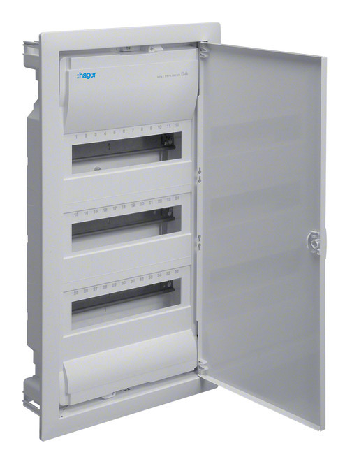 HAGER Kleinverteiler Volta, Unterputz, 3x12 Teilungseinheiten, IP30, mit Tür bestückt nach Auswahl.